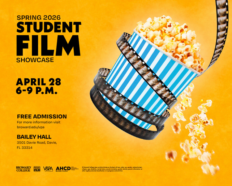 An evening of storytelling awaits. Broward College's Film Production Technology program invites you to the Spring 2026 Student Showcase — a three-hour celebration of emerging cinema from our Central Campus.